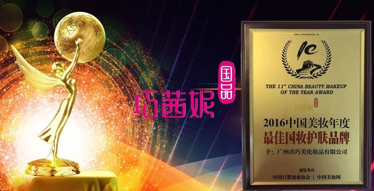 巧茜妮國品榮獲中國美妝2016年度最佳國妝護膚品牌殊榮!