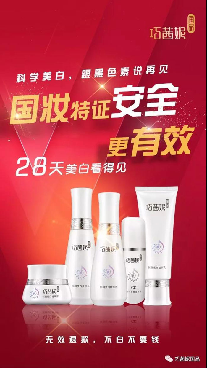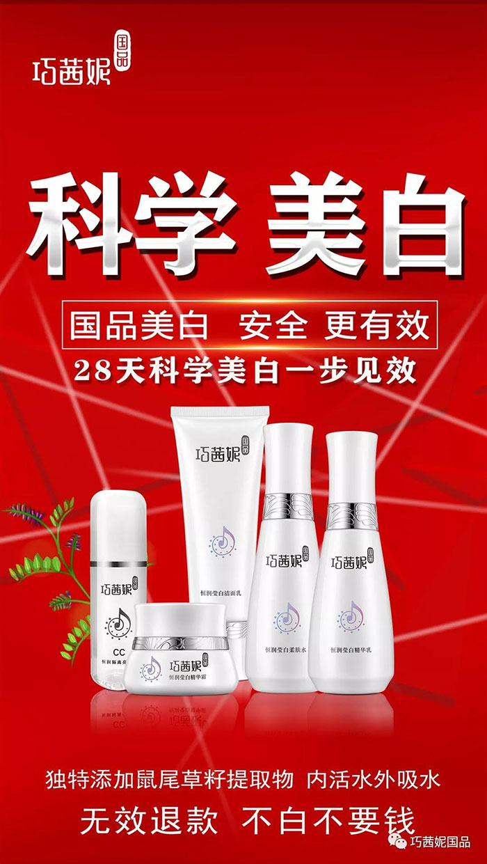 巧茜妮國品恒潤瑩白系列含鼠尾草籽提取物,運用國內最頂尖的科學美白技術,匠心品質、匠心工藝、100%安全有效,28天美白一步到位!