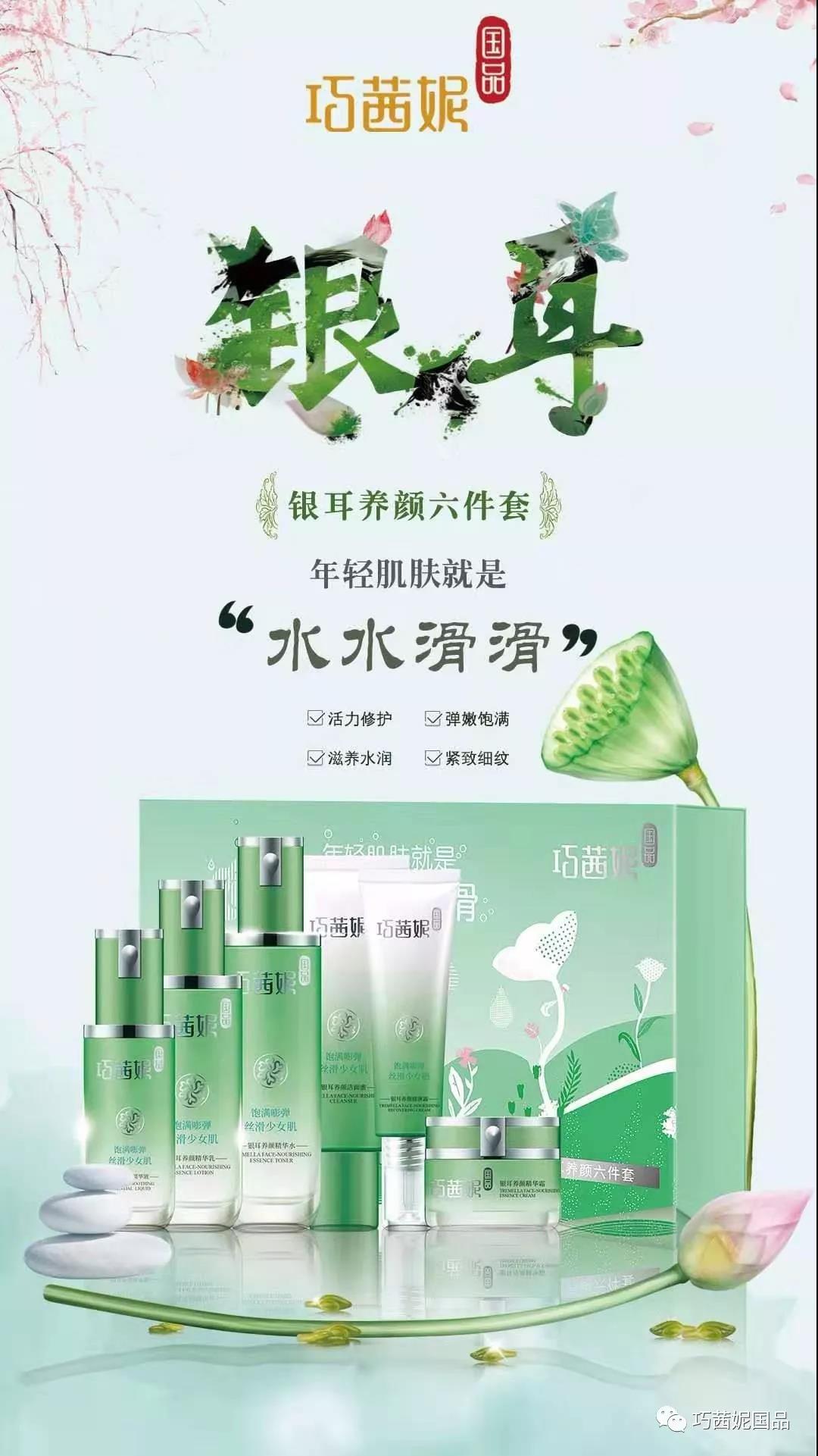 巧茜妮國品銀耳系列產(chǎn)品從上市以來,這幾年在市場上一直銷量領(lǐng)先,所以這次銀耳系列產(chǎn)品進行了包裝升級、成份升級,包裝簡約、時尚、大氣。銀耳養(yǎng)顏六件套里面的每一款單品含有銀耳高分子異聚多糖、透明質(zhì)酸、以及維生素E等等成份,所以銀耳系列的新品,它的抗初老效果以及美容養(yǎng)顏的效果更好。