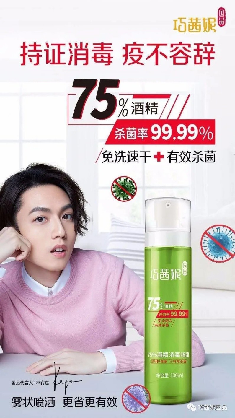 巧茜妮國品酒精消毒液含75%酒精,殺菌率達99.99%,安全配方,呵護健康,有效殺菌。