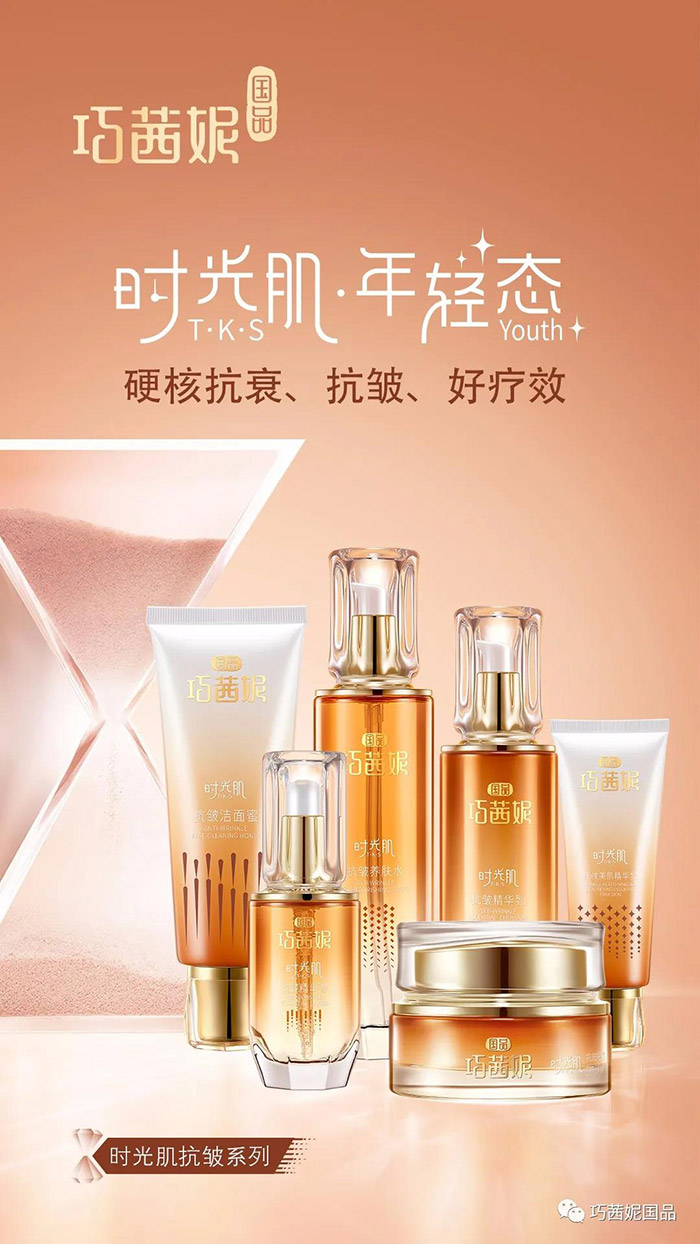 巧茜妮國品時光肌·抗皺系列,蘊含多種抗皺精華成份,賦予肌膚年輕狀態,配合多重潤膚保濕精萃,有效改善肌膚各類皺紋,為肌膚有皺紋的女性,帶來驚喜體驗,留住美好時光。