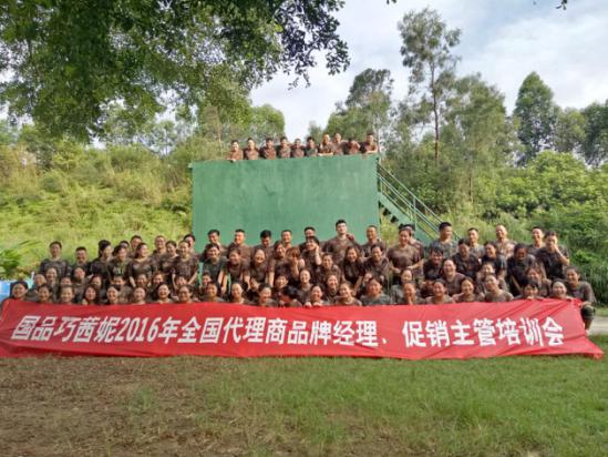 7月3號,佛山軍訓基地,來自國品巧茜妮全國代理商的品牌經理、促銷主管們齊聚一堂,用汗水和喜悅來迎接此次培訓會的第一天。