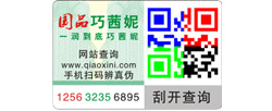 1. 撥打電話 400-9656-557或登錄巧茜妮官方網(wǎng)站 2. 輸入防偽標(biāo)簽上的查詢碼,即可查詢真?zhèn)巍?/p> |