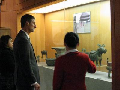 29日下午,百利先生饒有興致地參觀(guān)了河南省博物院,之后在省煤管局領(lǐng)導(dǎo)和中裕燃?xì)饪偛煤掠钕壬鹊呐阃?,訪(fǎng)問(wèn)了即將進(jìn)行捐助的鄭州工業(yè)安全職業(yè)技術(shù)學(xué)院。
