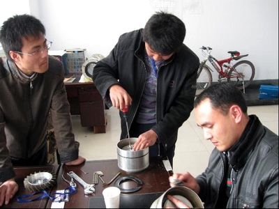 對癥方可下藥。在仔細分析了流量計表現(xiàn)出來的癥狀之后,工作人員已基本可以肯定征兆的源頭在于軸承了,下步要做的工作就是驗證這一推論、同時解決相應問題。零件被一一拆卸下來,期間費了大家不少功夫,尤其是對“罪魁禍首”軸承的拆分,這個指甲蓋大小的“精密元件”著實讓我們這幫大老爺們費了不少的勁兒,連縫衣針和水果刀都派上用場了。以至于在成功清除掉卡在軸承滾珠與軸承內(nèi)壁之間的雜質(zhì)、使其恢復正常運作之后,我們都有點不敢相信真是自己做到的。