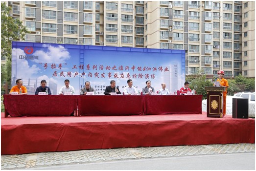 本次演練由集團(tuán)安全運(yùn)營部、北部區(qū)域中心聯(lián)合舉辦,臨沂中能、泗洪偉業(yè)承辦,泗洪消防隊(duì)配合參演。演練以泗洪公司某燃?xì)庥脩艏抑邪l(fā)生燃?xì)獗际鹿蕿楸尘?。泗洪公司值班話?wù)員接小區(qū)用戶事故報(bào)警后立即響應(yīng),搶險(xiǎn)人員15分鐘后趕到事發(fā)現(xiàn)場,迅速采取了現(xiàn)場警戒、切斷氣源、搶救傷者、疏散群眾、監(jiān)測燃?xì)鉂舛取⑾鹪吹葢?yīng)急措施,同時向公司領(lǐng)導(dǎo)匯報(bào)了現(xiàn)場情況。公司領(lǐng)導(dǎo)根據(jù)現(xiàn)場情況迅速啟動公司級應(yīng)急搶險(xiǎn)預(yù)案。演練過程中,對現(xiàn)場取證、媒體采訪、恢復(fù)供氣、事故用戶資料準(zhǔn)備、事故調(diào)查等工作也進(jìn)行了模擬。